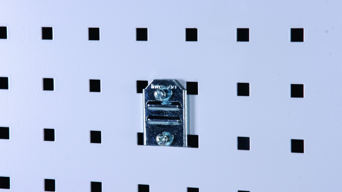 • Enkel montering – hakas i perforerad panel och låses med stoppskruv.