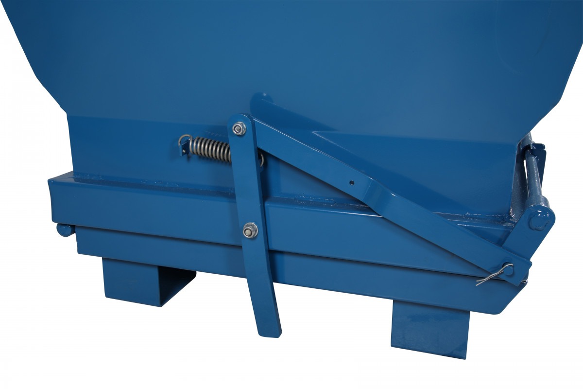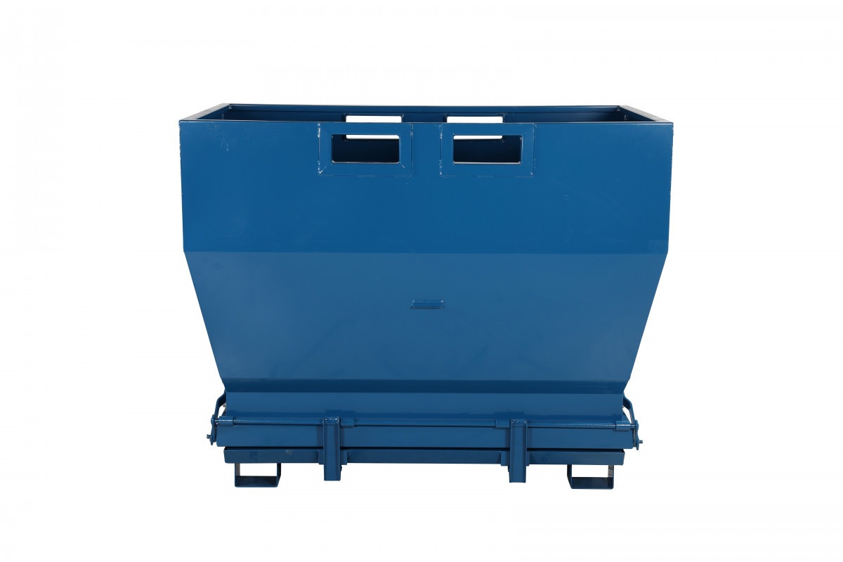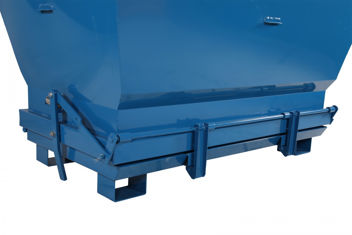 Bottentömmande container 1800 L med automatisk öppning och låsning. Pulverlackerad, staplingsbar och enkel att hantera med truck eller gaffellyftvagn.