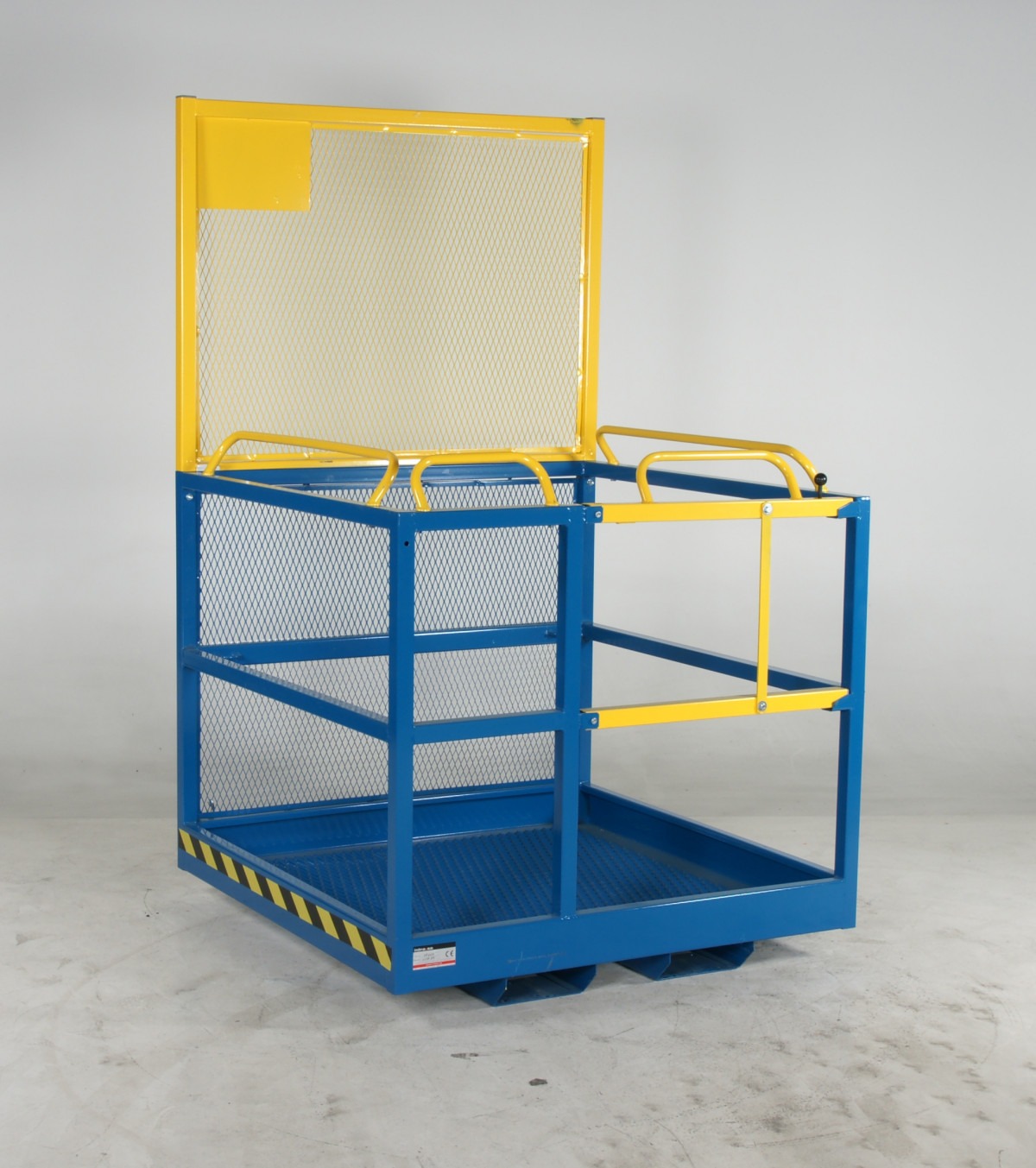 Hisskorg – AK 1200×1200 hisskorg för säkra personlyft, utrustad med halkfritt golv, dubbla säkerhetskedjor och fjädrande dubbelverkande lås i grind. CE-godkänd enligt SS 3628.