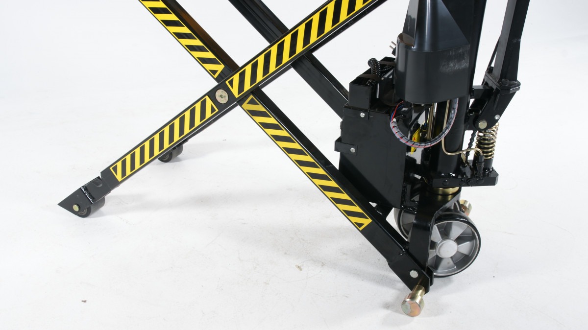 Eldriven saxlyftare PL 1500 med 1170 mm långa gafflar. Robust och kompakt design med integrerat batteri och pumpenhet som ger utmärkt kontroll och ergonomisk lyfthjälp. Snabb lyftning på 11 sekunder utan last.