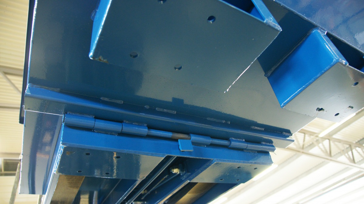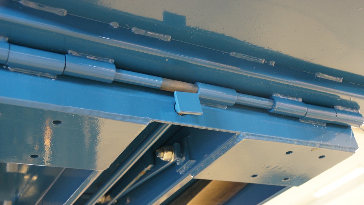 Containern är utrustad med gaffellåsning som ger stabilitet och säkerhet vid truckhantering. Tack vare den låga bygghöjden töms den smidigt över sin axel med hjälp av kraftiga gångjärn. Den fjäderbelastade tryckplattan på underredet gör att tömningen sker automatiskt – en funktion som sparar både tid och arbetsinsats.