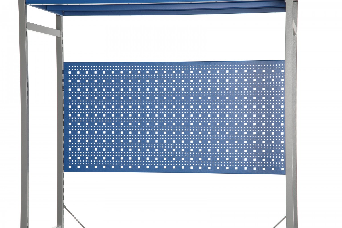 Panelen levereras med två upphängningskrokar som gör det enkelt att komma igång med organiseringen direkt. Den blå lacken (RAL 5005) matchar övriga komponenter i hyllsystemet och skapar en enhetlig och professionell arbetsmiljö.