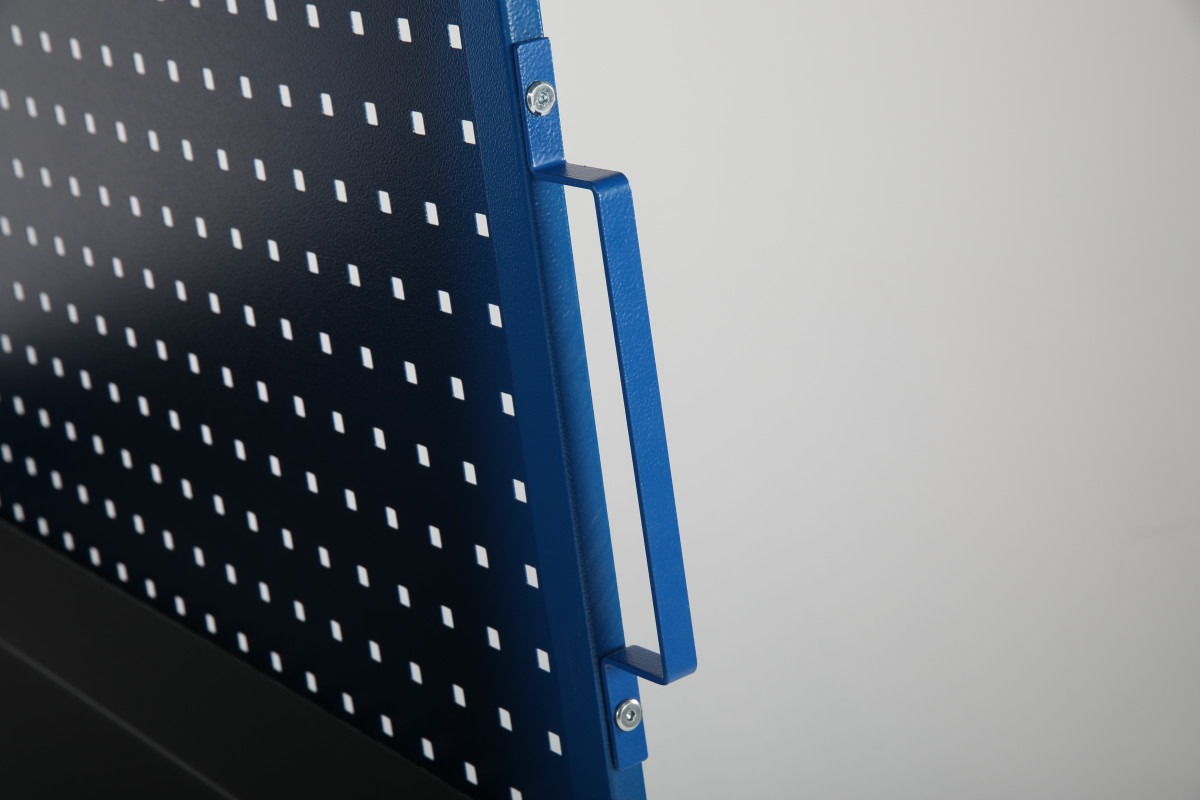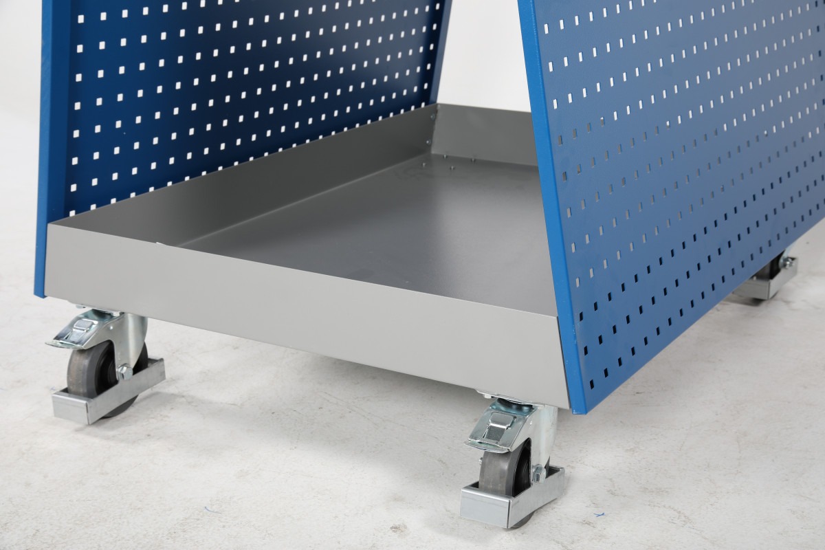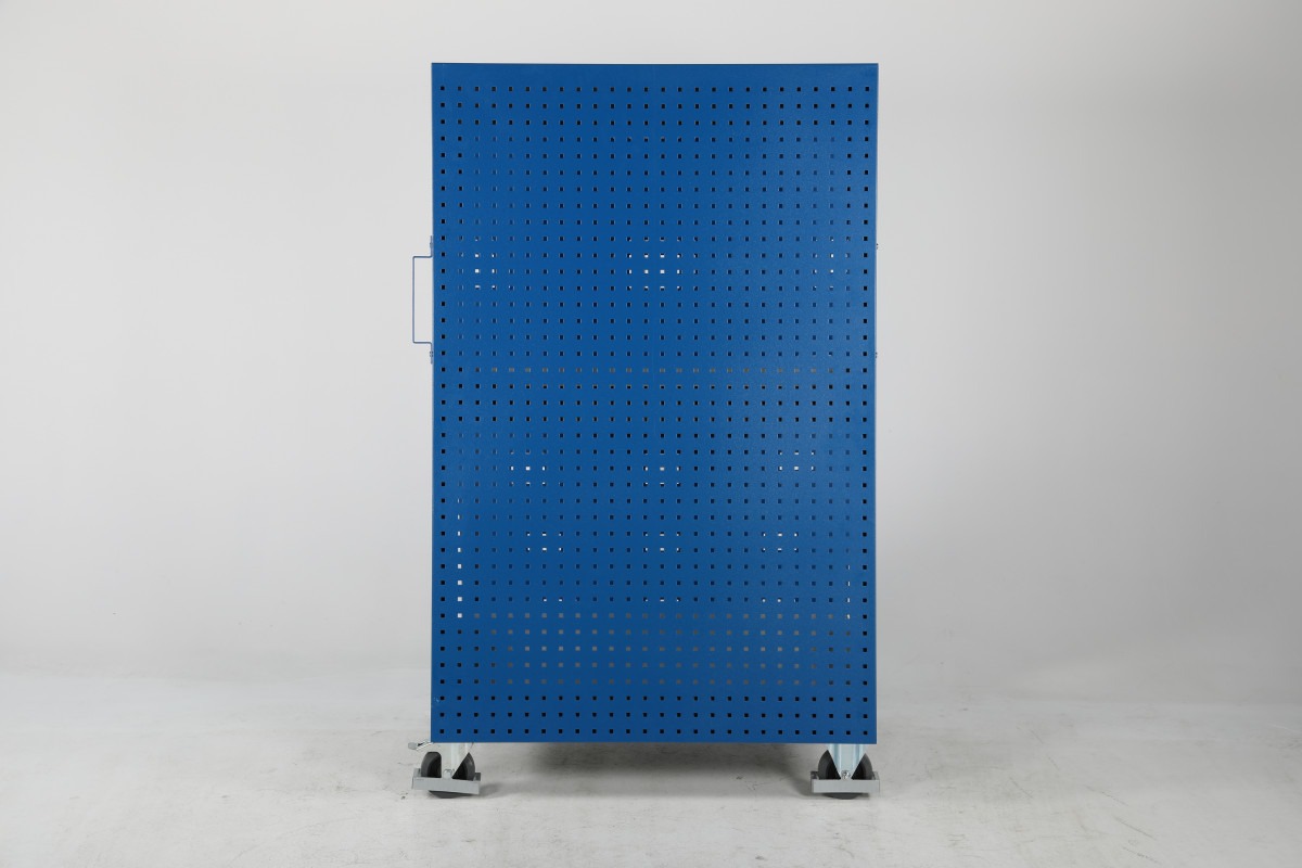 Vagnen har perforerade paneler med 9 mm kvadratiska hål och cc 38 mm, vilket möjliggör enkel upphängning av verktygskrokar och tillbehör. Detta skapar en flexibel och lättillgänglig arbetsstation där allt verktyg kan hållas organiserat.